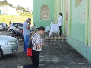 A partir de então, em todos os domingos, às 9h da manhã, haverá missa com transmissão (pela rede social da paróquia e rádio) e comunhão eucarística ao final na porta da igreja – com a condição de ter participado da missa em qualquer lugar antes de ir comungar usando a máscara – até o meio dia (12h).