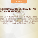 Após avaliação dos membros do Conselho Presbiteral quanto aos candidatos, ficou aprovada que o bispo institua no Ministério de Leitor os seminaristas: Abel de Pinho Mourão e Evanilton Santos Gonçalves e no Ministério de Acólito o Seminarista Warlley do Amaral da Silva Reis.